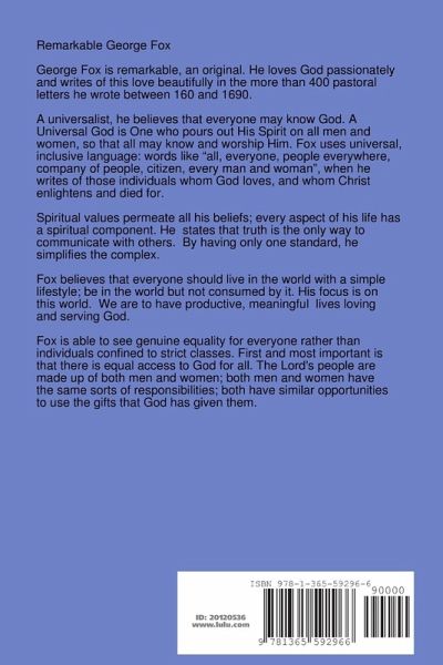This book, Volume I, is letters 1-100. In them Fox writes of his passionate love of God and Christ the Light. He describes how we may live the life of a pacifist. But we may always, if necessary, confront our persecutors. He tells us how to marry in the manner of Friends; he tells us how to to be Quaker Christians.