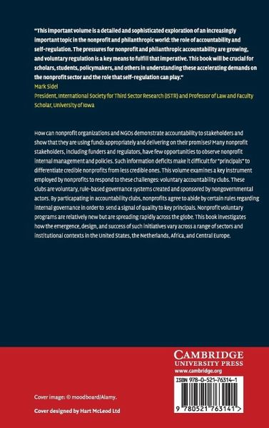 How can nonprofit organizations and NGOs demonstrate accountability to stakeholders and show that they are using funds appropriately and delivering on their promises? Many nonprofit stakeholders, including funders and regulators, have few opportunities to observe nonprofit internal management and policies. Such information deficits make it difficult for 'principals' to differentiate credible nonprofits from less credible ones. This volume examines a key instrument employed by nonprofits to respond to these challenges: voluntary accountability clubs. These clubs are voluntary, rule-based governance systems created and sponsored by nongovernmental actors. By participating in accountability clubs, nonprofits agree to abide by certain rules regarding internal governance in order to send a signal of quality to key principals. Nonprofit voluntary programs are relatively new but are spreading rapidly across the globe. This book investigates how the emergence, design, and success of such initiatives vary across a range of sectors and institutional contexts in the United States, the Netherlands, Africa, and Central Europe.