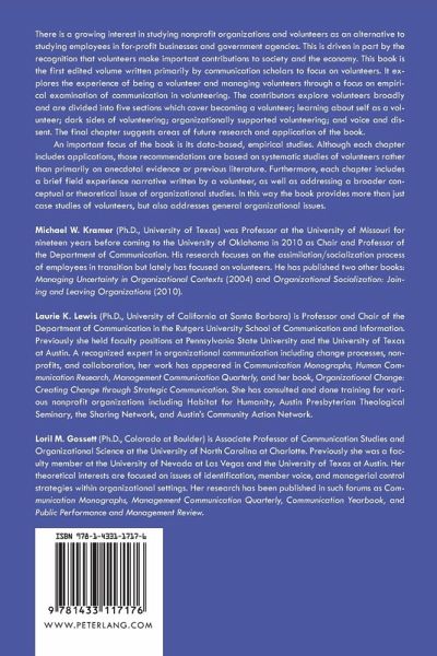 «This edited volume is a sterling and unique contribution to understanding how we can grapple with problems and potentials of volunteering and civic engagement in an era of considerable social, political and technological change. Instead of taking a standard theory-first approach to contemporary volunteering, Kramer, Lewis, and Gossett have compiled eighteen contributions that focus significantly on the experience of volunteering in a multitude of contexts. The studies themselves encompass a broad swathe of communicative issues such as uncertainty, dissent, belonging, socialization, voice, and risk. The result is thus a creative, comprehensive, pragmatic, and wide-ranging compilation that will not only shift the grounds of research for communication scholars interested in these issues, but will also be a substantial resource for students, non-profit and community or-ganizations, policy makers, and crucially, volunteers themselves.» (Shiv Ganesh, Massey University Albany, Auckland, New Zealand)