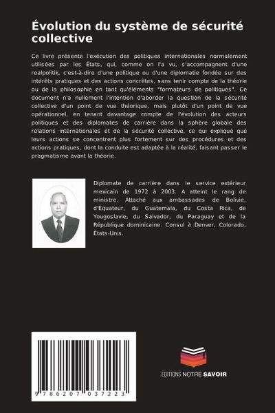 Ce livre présente l'exécution des politiques internationales normalement utilisées par les États, qui, comme on l'a vu, s'accompagnent d'une realpolitik, c'est-à-dire d'une politique ou d'une diplomatie fondée sur des intérêts pratiques et des actions concrètes, sans tenir compte de la théorie ou de la philosophie en tant qu'éléments "formateurs de politiques". Ce document n'a nullement l'intention d'aborder la question de la sécurité collective d'un point de vue théorique, mais plutôt d'un point de vue opérationnel, en tenant davantage compte de l'évolution des acteurs politiques et des diplomates de carrière dans la sphère globale des relations internationales et de la sécurité collective, ce qui explique que leurs actions se concentrent plus fortement sur des procédures et des actions pratiques, dont la conduite est adaptée à la réalité, faisant passer le pragmatisme avant la théorie.