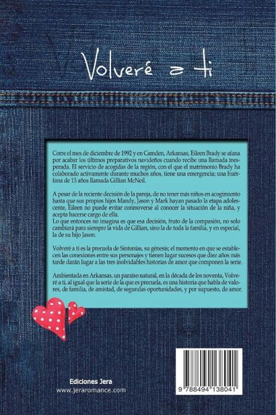 Corre el mes de diciembre de 1992 y en Camden, Arkansas, Eileen Brady se afana por acabar los últimos preparativos navideños cuando recibe una llamada inesperada. El servicio de acogidas de la región, con el que el matrimonio Brady ha colaborado activamente durante muchos años, tiene una emergencia; una huérfana de 13 años llamada Gillian McNeil. A pesar de la reciente decisión de la pareja, de no tener más niños en acogimiento hasta que sus propios hijos Mandy, Jason y Mark hayan pasado la etapa adolescente, Eileen no puede evitar conmoverse al conocer la situación de la niña, y acepta hacerse cargo de ella. Lo que entonces no imagina es que esa decisión, fruto de la compasión, no solo cambiará para siempre la vida de Gillian, sino la de toda la familia, y en especial, la de su hijo Jason. Volveré a ti es la precuela de Sintonías, su génesis; el momento en que se establecen las conexiones entre sus personajes y tienen lugar sucesos que diez años más tarde darán lugar a las tres inolvidables historias de amor que componen la serie. Ambientada en Arkansas, un paraíso natural, en la década de los noventa, Volveré a ti, al igual que la serie de la que es precuela, es una historia que habla de valores, de familia, de amistad, de segundas oportunidades, y por supuesto, de amor.