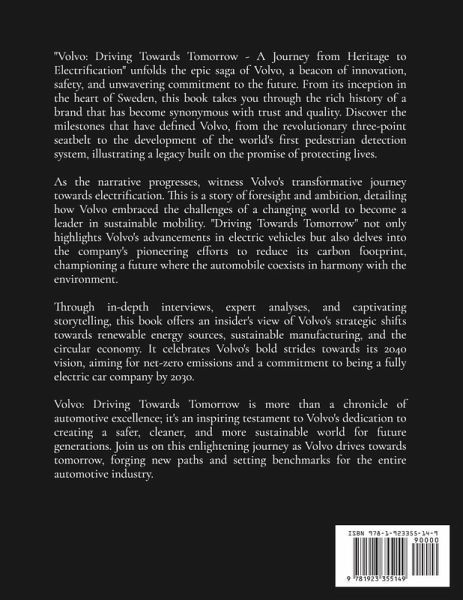 "Volvo: Driving Towards Tomorrow - A Journey from Heritage to Electrification" unfolds the epic saga of Volvo, a beacon of innovation, safety, and unwavering commitment to the future. From its inception in the heart of Sweden, this book takes you through the rich history of a brand that has become synonymous with trust and quality. Discover the milestones that have defined Volvo, from the revolutionary three-point seatbelt to the development of the world's first pedestrian detection system, illustrating a legacy built on the promise of protecting lives. As the narrative progresses, witness Volvo's transformative journey towards electrification. This is a story of foresight and ambition, detailing how Volvo embraced the challenges of a changing world to become a leader in sustainable mobility. "Driving Towards Tomorrow" not only highlights Volvo's advancements in electric vehicles but also delves into the company's pioneering efforts to reduce its carbon footprint, championing a future where the automobile coexists in harmony with the environment. Through in-depth interviews, expert analyses, and captivating storytelling, this book offers an insider's view of Volvo's strategic shifts towards renewable energy sources, sustainable manufacturing, and the circular economy. It celebrates Volvo's bold strides towards its 2040 vision, aiming for net-zero emissions and a commitment to being a fully electric car company by 2030. Volvo: Driving Towards Tomorrow is more than a chronicle of automotive excellence; it's an inspiring testament to Volvo's dedication to creating a safer, cleaner, and more sustainable world for future generations. Join us on this enlightening journey as Volvo drives towards tomorrow, forging new paths and setting benchmarks for the entire automotive industry.