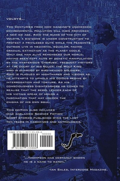 Two centuries from now, humans' unchecked environmental pollution will have provoked a new ice age. Amid the ruins of the city of Volwys, a bio-dome is under construction to protect a privileged elite, while the peasants outside live in mediaeval squalor, facing gradual extinction as the planet cools. Only one man alive remembers our world, having been kept alive by genetic manipulation by the mysterious 'cherubs'. The cherubs are frequent visitors at the court of the ruler: The Wolf King, who is guarded by bird-headed soldiers. Rrio is plagued by nightmares and visions as he attempts to uphold his odious regime by interrogation and torture. As his consciousness disintegrates, he comes to realise that the rebel leader each of his victims speaks of holds a fascination that may unlock the enigma of his own soul. This edition also includes nine acclaimed science fiction short stories published over the last ten years in magazines and anthologies.