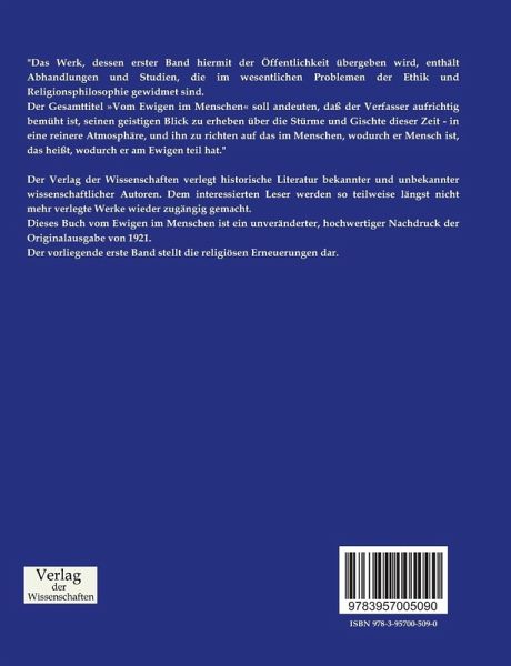 Dieses Buch vom Ewigen im Menschen ist ein unveränderter, hochwertiger Nachdruck der Originalausgabe von 1921.