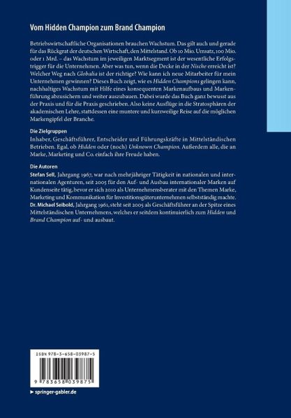 Wie wird man vom Hidden Champion zum Brand Champion und wieso sollte man das überhaupt wollen? In Zeiten in denen sich die Königsdisziplin Markenaufbau und Markenführung im deutschen Mittelstand im tiefsten Dornröschenschlaf befindet, ist es höchste Zeit die Themen Brand und Hidden miteinander bekanntzumachen und die Champions endlich wach zu küssen. Also, folgen Sie den beiden Autoren Dr. Michael Seibold und Stefan Sell auf einer kurzweiligen Reise auf die möglichen Markengipfel der Branche. Lernen Sie schnell und anschaulich aus der Praxis, welche Höhen zu erklimmen sind und auf welche Spalten man achten sollte, wenn man sein Wachstum als Hidden Champion nachhaltig und international sichern will.