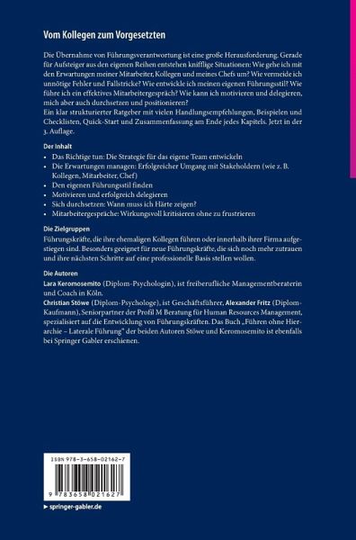 Die Übernahme von Führungsverantwortung ist eine große Herausforderung. Gerade für Aufsteiger aus den eigenen Reihen entstehen knifflige Situationen: Wie gehe ich mit den Erwartungen meiner Mitarbeiter, Kollegen und meines Chefs um? Wie vermeide ich unnötige Fehler und Fallstricke? Wie entwickle ich meinen eigenen Führungsstil? Wie führe ich ein effektives Mitarbeitergespräch? Wie kann ich motivieren und delegieren, mich aber auch durchsetzen und positionieren?