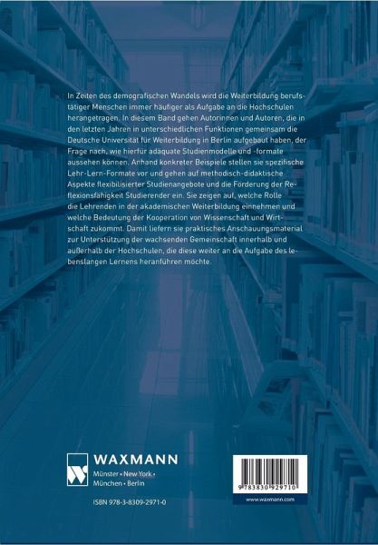 In Zeiten des demografischen Wandels wird die Weiterbildung berufstätiger Menschen immer häufiger als Aufgabe an die Hochschulen herangetragen. In diesem Band gehen Autorinnen und Autoren der Frage nach, wie hierfür adäquate Studienmodelle und -formate aussehen können. Anhand konkreter Beispiele stellen sie spezifische Lehr-Lern-Formate vor und gehen auf methodisch-didaktische Aspekte flexibilisierter Studienangebote und die Förderung der Reflexionsfähigkeit Studierender ein. Sie zeigen auf, welche Rolle die Lehrenden in der akademischen Weiterbildung einnehmen und welche Bedeutung der Kooperation von Wissenschaft und Wirtschaft zukommt. Damit liefern sie praktisches Anschauungsmaterial zur Unterstützung der wachsenden Gemeinschaft innerhalb und außerhalb der Hochschulen, die diese weiter an die Aufgabe des lebenslangen Lernens heranführen möchte.