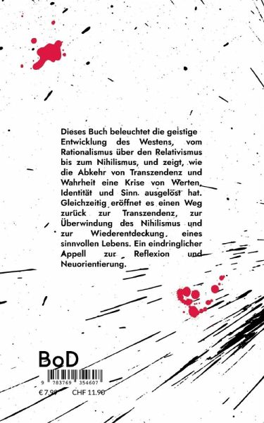 Dieses Buch beleuchtet die geistige Entwicklung des Westens, vom Rationalismus über den Relativismus bis zum Nihilismus, und zeigt, wie die Abkehr von Transzendenz und Wahrheit eine Krise von Werten, Identität und Sinn ausgelöst hat. Gleichzeitig eröffnet es einen Weg zurück zur Transzendenz, zur Überwindung des Nihilismus und zur Wiederentdeckung eines sinnvollen Lebens. Ein eindringlicher Appell zur Reflexion und Neuorientierung.