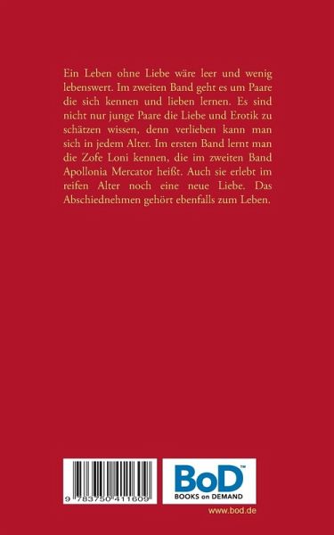 Ein Leben ohne Liebe wäre leer und wenig lebenswert. Im zweiten Band geht es um Paare, die sich kennen und lieben lernen. Es sind nicht nur junge Paare, die Liebe und Erotik zu schätzen wissen, denn verlieben kann man sich in jedem Alter. Im ersten Band lernt man die Zofe Loni kennen, die im zweiten Band Apollonia Mercator heißt. Auch sie erlebt im reifen Alter noch eine neue Liebe. Das Abschiednehmen gehört ebenfalls zum Leben.