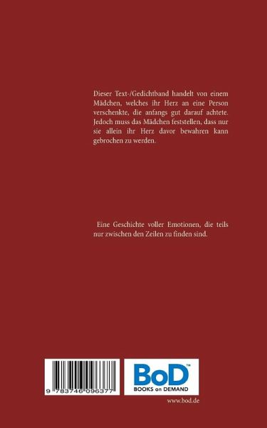 Dieser Text-/Gedichtband handelt von einem Mädchen, welches ihr Herz an eine Person verschenkte, die anfangs gut darauf achtete. Jedoch muss das Mädchen feststellen, dass nur sie allein ihr Herz davor bewahren kann gebrochen zu werden.