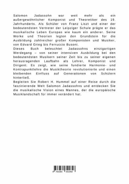 Salomon Jadassohn war weit mehr als ein außergewöhnlicher Komponist und Theoretiker des 19. Jahrhunderts. Als Schüler von Franz Liszt und einer der bedeutendsten Vertreter der Leipziger Schule prägte er das musikalische Leben Europas wie kaum ein anderer. Seine Werke und Theorien legten den Grundstein für die Ausbildung zahlreicher großer Komponisten und Musiker, von Edvard Grieg bis Ferruccio Busoni.Dieses Buch beleuchtet Jadassohns einzigartigen Werdegang - von seiner intensiven Ausbildung bei den bedeutendsten Musikern seiner Zeit bis zu seiner eigenen herausragenden Laufbahn als Lehrer, Komponist und Dirigent. Es zeigt, wie seine fundierte Harmonie- und Kontrapunktlehre die Musiktheorie revolutionierte und einen bleibenden Einfluss auf Generationen von Schülern hinterließ.Begleiten Sie Robert H. Hummel auf einer Reise durch die faszinierende Welt Salomon Jadassohns und entdecken Sie die musikalische Vision eines Mannes, der die europäische Musiklandschaft für immer verändert hat.