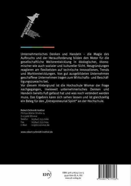 Unternehmerisches Denken und Handeln die Magie des Aufbruchs und der Herausforderung bilden den Motor für die gesellschaftliche Weiterentwicklung in ökologischer, ökonomischer wie auch sozialer und kultureller Sicht. Neugründungen reagieren am flexibelsten auf technische Innovationen, Trends und Marktentwicklungen. Von gut ausgebildeten Unternehmen geschaffene Unternehmen tragen zum Wirtschafts- und Beschäftigungszuwachs bei. Vor diesem Hintergrund ist die Hochschule Wismar der Frage nachgegangen, inwieweit unternehmerisches Denken und Handeln bereits Fuß gefasst hat und was noch verändert werden muss. Das Ergebnis kann sich sehen lassen und ist gleichzeitig ein Beleg für den Entrepreneurial Spirit an der Hochschule.