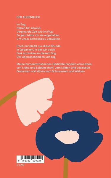 DER AUGENBLICKIm Zug.Neben Dir sitzend,Verging die Zeit wie im Flug.Zu gern hätte ich sie angehalten,Um unser Schicksal zu verwalten.Doch mir bleibt nur diese StundeIn Gedanken, in der wir beideFast ertranken an diesem Sog,Der überraschend an uns zog.SCHWERKRAFTDie Schwerkraft macht es uns nicht leicht.Sie zieht am Gewebe, bis es weicht.Immer nach unten,Hat Newton befunden.So zieht sie an Brüsten und Kinn,Um zu verdoppeln beide - nach unten hin.Die Kraft zieht schwer an unseren Körpern.Ich will es gar nicht weiter erörtern.Liebe Leser, meine humoerotristischen Gedichte handeln vom Leben.Sie erzählen von Liebe und viel Leidenschaft (Wollen), vom Leiden und Loslassen (Welken).Mal komisch, mal todernst, aber meist in Reimen,Finden sie Worte zum Schmunzeln und Weinen.Ich hoffe sehr, daß dieses Büchlein gefällt,Und es jemand sich bestellt.Viel Freude beim Lesen!
