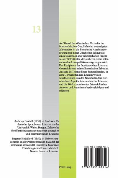 Die Herausgeber: Anthony Bushell (1951) ist Professor für deutsche Sprache und Literatur an der Universität Wales, Bangor. Zahlreiche Veröffentlichungen zur modernen deutschen und österreichischen Literatur. Dagmar Kot¿álová (1950) ist Universitätsdozentin an der Philosophischen Fakultät der Comenius-Universität Bratislava, Slowakei; Forschungs- und Unterrichtsfach: Neuere deutsche Literatur.