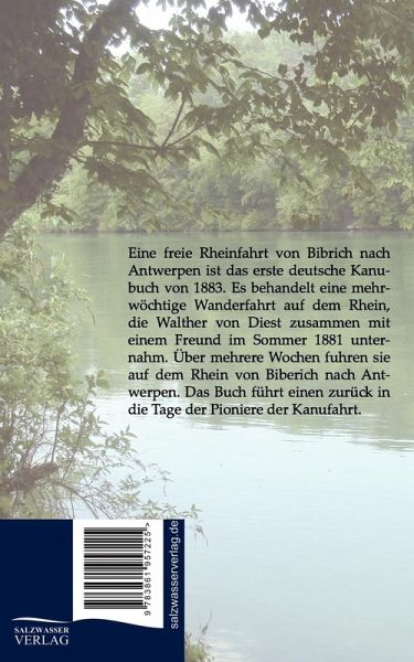 Eine freie Rheinfahrt von Bibrich nach Antwerpen ist das erste deutsche Kanubuch von 1883. Es behandelt eine mehrwöchtige Wanderfahrt auf dem Rhein, die Walther von Diest zusammen mit einem Freund im Sommer 1881 unternahm. Über mehrere Wochen fuhren sie auf dem Rhein von Biberich nach Antwerpen. Das Buch führt einen zurück in die Tage der Pioniere der Kanufahrt.