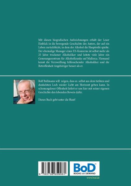 Mit diesen biografischen Aufzeichnungen erhält der Leser Einblick in die bewegende Geschichte des Autors, der auf ein Leben zurückblickt, in dem der Alkohol die Hauptrolle spielte. Der ehemalige Manager eines US-Konzerns ist selbst mehr als 25 Jahre trockener Alkoholiker und leitete viele Jahre ein Genesungszentrum für Alkoholkranke auf Mallorca. Niemand kennt die Verzweiflung hilfesuchender Alkoholiker und die Betroffenheit Angehöriger besser als er. Eindrucksvoll schildert Rolf Bollmann als selbstbetroffener Alkoholiker, wie es letztendlich möglich war, sich aus der Hölle der Alkoholsucht zu befreien. Er erzählt aber auch von seiner späteren Arbeit mit hilfesuchenden Alkoholkranken und liefert dem interessierten Leser darüber hinaus wertvolle Informationen und Tipps rund um das Thema Alkoholismus.Dieses Buch geht unter die Haut!