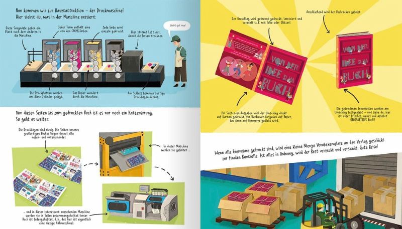 Informativ und lustig: Mit Witz, mitreißend und realistisch: Wir treffen Autorin, Illustratorin und Lektor, werfen einen Blick in die Herstellung und die Prozesse der Druckerei, und landen schließlich im Verkauf in der BuchhandlungFür die ganze Familie: Die Prozesse sind kindgerecht und doch detailliert beschrieben, sodass auch die Erwachsenen Neues lernenGroßformatig: Auf den großen Seiten kommen die wunderbaren Illustrationen toll zur GeltungPerfektes Geschenk: Ein zeitloses Liebhaberstück, ob jung oder alt - wer Bücher liebt, wird dieses Buch lieben