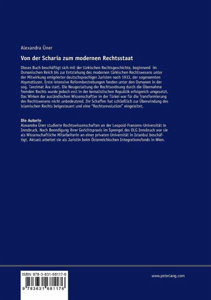Das Buch beschäftigt sich mit der türkischen Rechtsgeschichte, beginnend im Osmanischen Reich bis zur Entstehung des modernen türkischen Rechtswesens. Die Autorin untersucht dabei insbesondere die Mitwirkung emigrierter deutschsprachiger Juristen nach 1933, der sogenannten «Haymatlozen». Dadurch kann sie die Bedeutung der ausländischen Wissenschaftler für die Transformierung des Rechtswesens, die Neugestaltung der Rechtsordnung durch die Übernahme fremden Rechts sowie die Genese des modernen türkischen Rechtsstaates analysieren.
