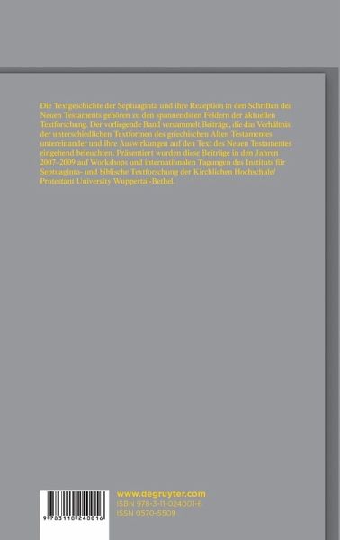 Der vorliegende Band versammelt Beiträge, die in den Jahren 2007-2009 auf Workshops und internationalen Tagungen des Instituts für Septuaginta- und biblische Textforschung der Kirchlichen Hochschule/Protestant University Wuppertal-Bethel präsentiert wurden. Die Texte nehmen zum einen das Verhältnis der unterschiedlichen Textformen des griechischen Alten Testamentes untereinander, zum anderen die Frage der Zitation alttestamentlicher Texte im Neuen Testament in ihren thematischen Fokus. Untersucht werden die Bedeutung des antiochenischen/lukianischen Textes und der kaige-Rezension für die Rekonstruktion der ältesten griechischen Textform; die Frage, inwieweit diese Rezensionen für die atl. Zitate im NT von Bedeutung sind; das Phänomen der Auszeichnung von atl. Zitaten in Manuskripten des NT durch Diplé sowie die Frage, welche Textvorlage den Zitaten in den verschiedenen ntl. Büchern zugrunde liegt. Weitere Aufsätze widmen sich den modernen Editionsmöglichkeiten biblischer Texte. Der Text der Johannes-Apokalypse und die Rückfrage nach der Rezeption des Alten Testaments durch den Seher bilden einen abschließenden Schwerpunkt, der aufzeigt, dass die biblische Textforschung noch zahlreiche spannende Fragen - und Antworten - bereithält.
