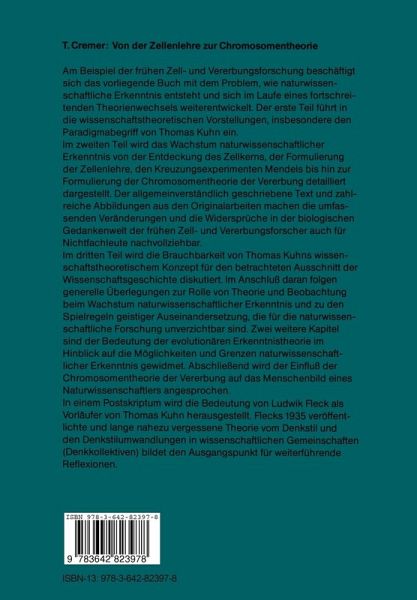 1 Wachstum naturwissenschaftlicher Erkenntnis: Einführung in die Wissenschaftstheorie von Thomas Kuhn.- 1.1 Paradigma, Anomalie, Krise und Revolution: Die Begriffe bei Thomas Kuhn.- 1.2 Kuhns Paradigma-Begriff aus der Sicht der Gestalttheorie.- 1.3 Bedeutung von Musterbeispielen in der Welterfahrung des heranwachsenden Kindes.- 1.4 Erster Exkurs: Unmögliche Gestalten.- 2 Wachstum naturwissenschaftlicher Erkenntnis: Von der Zelltheorie bis zur Chromosomentheorie der Vererbung.- 2.1 Zur Entwicklungsgeschichte der Mikroskopie und Histologie.- 2.2 Vorläufer der Zelltheorie: Franz Julius Ferdinand Meyen.- 2.3 Die Zelltheorie bei Schleiden und Schwann.- 2.4 Wissenschaftstheorie bei Schwann und Schleiden.- 2.5 Krise der Zelltheorie: Wie bilden sich Zellen?.- 2.6 Zellkern und Befruchtungslehre.- 2.7 Die Entdeckung der Chromosomen.- 2.8 Zweiter Exkurs: Zur Rolle von Wissenschaftssprache und esoterischen Objekten beim Wachstum wissenschaftlicher Erkenntnis.- 2.9 Kontinuität oder Auflösung der Chromosomen in der Interphase? Das Paradigma der Chromosomenindividualität.- 2.10 Chromosomentheorie der Vererbung vor 1900: August Weismanns Versuch einer "realen" Theorie.- 2.11 Die Geburt der Genetik: Das Paradigma von Gregor Mendel.- 2.12 Chromosomentheorie der Vererbung nach 1900: Walter S. Sutton und Theodor Boveri.- 2.13 Cytogenetik in der Lyssenko-Ära: Ein illegitimer Paradigmawechsel.- 3 Betrachtungen zum Wachstum wissenschaftlicher Erkenntnis.- 3.1 Kuhns Theorie des Paradigmawechsels und die Geschichte der frühen Zell- und Verer-bungsforschung: Ein kritischer Vergleich.- 3.2 Wie wächst wissenschaftliche Erkenntnis?.- 3.3 Der Wunsch nach geschlossenen Theorien und die Unvermeidbarkeit von Krisen im Wachstum der Erkenntnis. Bemerkungen aus dem Blickwinkel einerevolutionären Erkenntnistheorie.- 3.4 Sehen und räumliches Vorstellungsvermögen aus dem Blickwinkel einer evolutionären Erkenntnistheorie: der Mesokosmos als ,kognitive Nische' des Menschen.- 3.5 Schlußbetrachtung: Entwicklung der Chromosomentheorie und Menschenbild.- 4 Anmerkungen.- 5 Postscriptum - Ludwik Fleck (1896-1961) der Vorläufer von Thomas Kuhn: Die Theorie vom Denkstil und den Denkstilumwandlungen in wissenschaftlichen Gemeinschaften.- 6 Literatur.- 7 Namenverzeichnis.- 8 Sachverzeichnis.