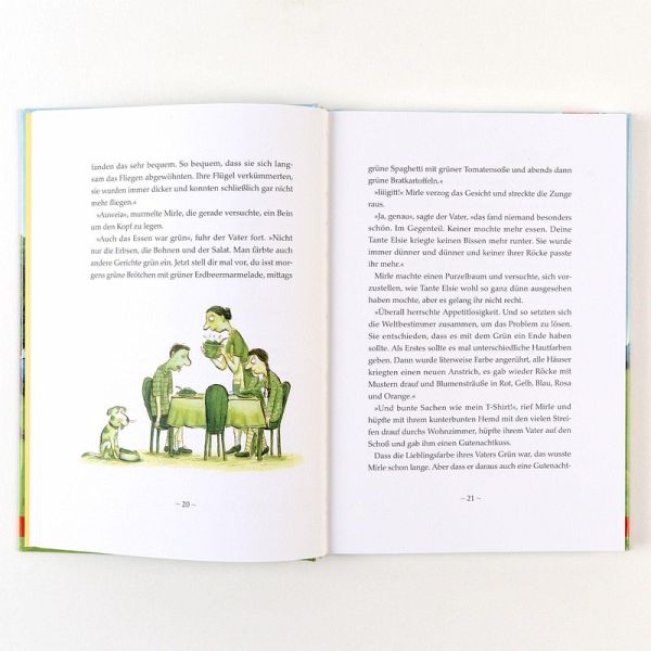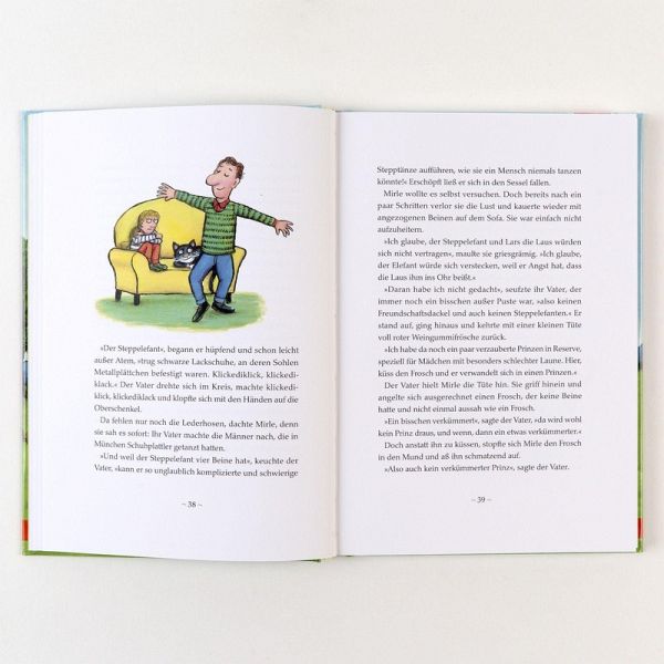 In diesem Buch sind wir Teil einer Unterhaltung zwischen Mirle und ihrem Vater. Jeden Abend, als Mama unterwegs ist, erzählt Mirles Vater die fantasievollsten Geschichte. Es begann alles damit, dass es auf Mirles Heimweg sehr windig war. Und so begann die erste Fantasiereise. Mirles Vater erzählte, dass früher jeder fliegen konnte. Und wir aus Spazieren fliegen wieder gehen wurde. In weiteren der insgesamt 15 Fantasiereisen erfahrt ihr etwas über grüne Menschen, ein Fischballett und eine eselige Verwandlung.