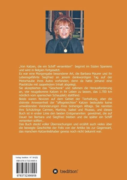 Beide waren Novizen auf dem Gebiet der Tierhaltung, aber die diskrete Anwesenheit der "pflegeleichten" Katzen bedeutete keine umwälzenden Veränderungen ihres bisherigen Alltags. Sie nannten ihre Schützlinge Carmen, Martina, Isabel und Picasso, und dieses Buch ist in erster Linie den beiden Erstgenannten gewidmet, die auf Dauer bei Barbara und Siegfried blieben und die später ein Schiff versenken sollten...