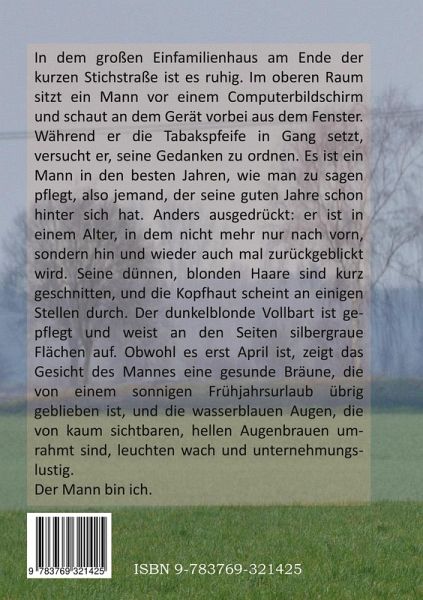In dem großen Einfamilienhaus am Ende der kurzen Stichstraße ist es ruhig. Im oberen Raum sitzt ein Mann vor einem Computerbildschirm und schaut an dem Gerät vorbei aus dem Fenster. Während er die Tabakspfeife in Gang setzt, versucht er, seine Gedanken zu ordnen. Es ist ein Mann in den besten Jahren, wie man zu sagen pflegt, also jemand, der seine guten Jahre schon hinter sich hat. Anders ausgedrückt: er ist in einem Alter, in dem nicht mehr nur nach vorn, sondern hin und wieder auch mal zurückgeblickt wird. Seine dünnen, blonden Haare sind kurz geschnitten, und die Kopfhaut scheint an einigen Stellen durch. Der dunkelblonde Vollbart ist gepflegt und weist an den Seiten silbergraue Flächen auf. Obwohl es erst April ist, zeigt das Gesicht des Mannes eine gesunde Bräune, die von einem sonnigen Frühjahrsurlaub übriggeblieben ist, und die wasserblauen Augen, die von kaum sichtbaren, hellen Augenbrauen umrahmt sind, leuchten wach und unternehmungslustig. Der Mann bin ich.