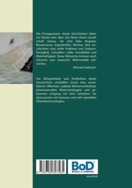 Die Protagonisten dieser Geschichten leben am Rande oder über den Rand dieser Gesellschaft hinaus. Sie sind üble Angeber, Besserwisser, Eigenbrötler, Machos. Ihre Geschichten sind voller Prahlerei und Unbarmherzigkeit, trotzallem voller Sensibilität und Wahrhaftigkeit. Diese Wüteriche können auch träumen und utopische Weltmodelle entwerfen.Michael LiebuschDie Alltagshelden und Antihelden dieser Geschichten verblüffen durch eine unverblümte Offenheit, radikale Mitmenschlichkeit, phantasievollen Widerstandsgeist und gekonnten Umgang mit dem Scheitern. Sie überraschen mit kuriosen und sehr speziellen Überlebensstrategien.
