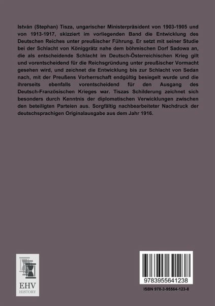 István (Stephan) Tisza, ungarischer Ministerpräsident von 1903-1905 und von 1913-1917, skizziert im vorliegenden Band die Entwicklung des Deutschen Reiches unter preußischer Führung. Er setzt mit seiner Studie bei der Schlacht von Königgrätz nahe dem böhmischen Dorf Sadowa an, die als entscheidende Schlacht im Deutsch-Österreichischen Krieg gilt und vorentscheidend für die Reichsgründung unter preußischer Vormacht gesehen wird, und zeichnet die Entwicklung bis zur Schlacht von Sedan nach, mit der Preußens Vorherrschaft endgültig besiegelt wurde und die ihrerseits ebenfalls vorentscheidend für den Ausgang des Deutsch-Französischen Krieges war. Tiszas Schilderung zeichnet sich besonders durch Kenntnis der diplomatischen Verwicklungen zwischen den beteiligten Parteien aus. Sorgfältig nachbearbeiteter Nachdruck der deutschsprachigen Originalausgabe aus dem Jahr 1916.