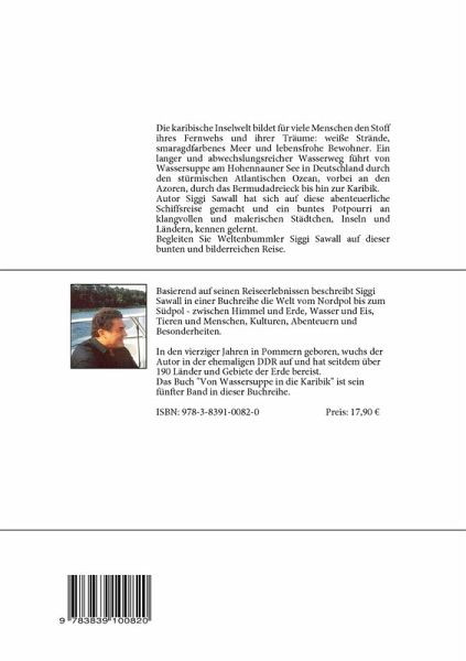 Die Karibische Inselwelt ist eine der bezauberndsten Breiten unseres Planeten. In all ihrer Exotik bildet sie für viele Menschen den Stoff für Träume von Fernweh und Exotik. Weiße Strände, smaragdfarbenes Meer und Bewohner, die ihre Lebensfreude leicht und unbekümmert in die Welt hinaus musizieren, singen und tanzen ¿ und Besucher daran teilhaben lassen. Tausende Kilometer von der Karibik entfernt befindet sich ein anderes, viel bescheideneres Idyll. Es liegt unmittelbar am Hohennauner See in der Mark Brandenburg und trägt den außergewöhnlichen Namen ¿Wassersuppe¿. Doch die Karibik und Wassersuppe verbindet etwas. Ein langer und abwechslungsreicher Wasserweg vom Hohennauner See, über die Havel und die Elbe, in den stürmischen Atlantischen Ozean, vorbei an den Azoren, durch das berüchtigte Bermudadreieck, bis hin zur Karibik. Ob es eine Flaschenpost jemals so weit geschafft hat? Nicht in einer Flasche, sondern auf russischen Schiffen, beispielsweise der ¿Taras Shevchenkö, hat sich der Autor Siggi Sawall, auf die Reise gemacht und auf seinem Weg ein buntes Potpourri an klangvollen und malerischen Städtchen, Inseln und Ländern ¿ auch jenseits der Karibik ¿ kennen gelernt. Begleiten Sie Siggi Sawall auf dieser bunten und bilderreichen Reise durch Kuba, die Dominikanische Republik, Puerto Rico, Martinique, Barbados, Grenada, Trinidad und Tobago, Venezuela, Mexiko und Jamaika.