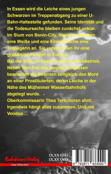 Oberkommissarin Theodora „Thea“ Terschüren, wegen ihrer roten Haarpracht von den meisten Kollegen beim Kommissariat 11 der Kripo in Essen „Möhrchen“ genannt, wird zur Leiche eines jungen schwarzen Mannes gerufen, der mit verdrehten Gliedern im Treppenabgang zur U-Bahn Haltestelle in der Nähe der Essener Philharmonie liegt, gerufen. Es ist gar nicht so einfach seine Identität und die Todesursache festzustellen.