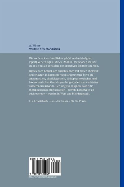 Die vordere Kreuzbandläsion gehört zu den häufigsten (Sport-) Verletzungen. Mit ca. 28.000 Operationen im Jahr steht sie mit an der Spitze der operativen Eingriffe am Knie. Dieses Buch befasst sich ausschließlich mit dieser Thematik und erläutert in komplexer und strukturierter Form die anatomischen, physiologischen, pathophysiologischen und biomechanischen Grundlagen des gesunden und verletzten vorderen Kreuzbands. Der Weg zur Diagnose sowie die therapeutischen Möglichkeiten - sowohl konservativ als auch operativ - werden, ergänzt durch instruktive Abbildungen, dargestellt.
