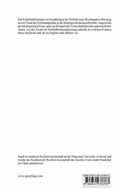 Die Kriminalisierung von Handlungen im Vorfeld einer Rechtsgutsverletzung ist ein Trend der Kriminalpolitik in der heutigen Risikogesellschaft. Angesichts der ökologischen Krise und am Beispiel des Umweltstrafrechts untersucht der Autor, wie der Trend zur Vorfeldkriminalisierung entsteht, in welchen Formen diese erscheint und ob sie legitim und effektiv ist.