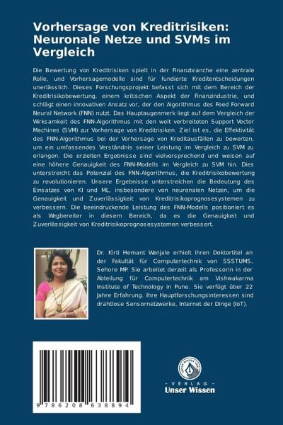 Die Bewertung von Kreditrisiken spielt in der Finanzbranche eine zentrale Rolle, und Vorhersagemodelle sind für fundierte Kreditentscheidungen unerlässlich. Dieses Forschungsprojekt befasst sich mit dem Bereich der Kreditrisikobewertung, einem kritischen Aspekt der Finanzindustrie, und schlägt einen innovativen Ansatz vor, der den Algorithmus des Feed Forward Neural Network (FNN) nutzt. Das Hauptaugenmerk liegt auf dem Vergleich der Wirksamkeit des FNN-Algorithmus mit den weit verbreiteten Support Vector Machines (SVM) zur Vorhersage von Kreditrisiken. Ziel ist es, die Effektivität des FNN-Algorithmus bei der Vorhersage von Kreditausfällen zu bewerten, um ein umfassendes Verständnis seiner Leistung im Vergleich zu SVM zu erlangen. Die erzielten Ergebnisse sind vielversprechend und weisen auf eine höhere Genauigkeit des FNN-Modells im Vergleich zu SVM hin. Dies unterstreicht das Potenzial des FNN-Algorithmus, die Kreditrisikobewertung zu revolutionieren. Unsere Ergebnisse unterstreichen die Bedeutung des Einsatzes von KI und ML, insbesondere von neuronalen Netzen, um die Genauigkeit und Zuverlässigkeit von Kreditrisikoprognosesystemen zu verbessern. Die beeindruckende Leistung des FNN-Modells positioniert es als Wegbereiter in diesem Bereich, da es die Genauigkeit und Zuverlässigkeit von Kreditrisikoprognosesystemen verbessert.