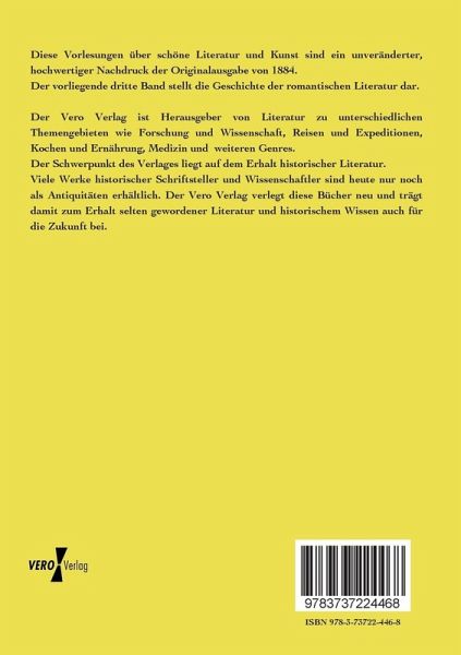 Diese Vorlesungen über schöne Literatur und Kunst sind ein unveränderter, hochwertiger Nachdruck der Originalausgabe von 1884.