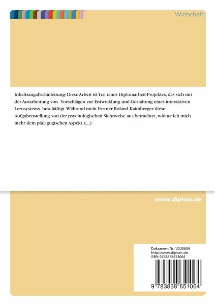 Diese Arbeit ist Teil eines Diplomarbeit-Projektes, das sich mit der Ausarbeitung von Vorschlägen zur Entwicklung und Gestaltung eines interaktiven Lernsystems beschäftigt. Während mein Partner Roland Kaimberger diese Aufgabenstellung von der psychologischen Sichtweise aus betrachtet, widme ich mich mehr dem pädagogischen Aspekt. Der Theorieteil dieser Arbeit befasst sich deswegen mit der Formulierung von konkreten Regieanweisungen , die dann anhand eines Lernprogrammes zur Einführung in die Psychologischen Grundlagen der Erziehung' realisiert und anschließend evaluiert werden.