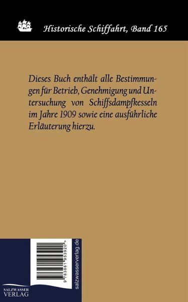Dieses Buch enthält alle Bestimmungen für Betrieb, Genehmigung und Untersuchung von Schiffsdampfkesseln im Jahre 1909 sowie eine ausführliche Erläuterung hierzu.
