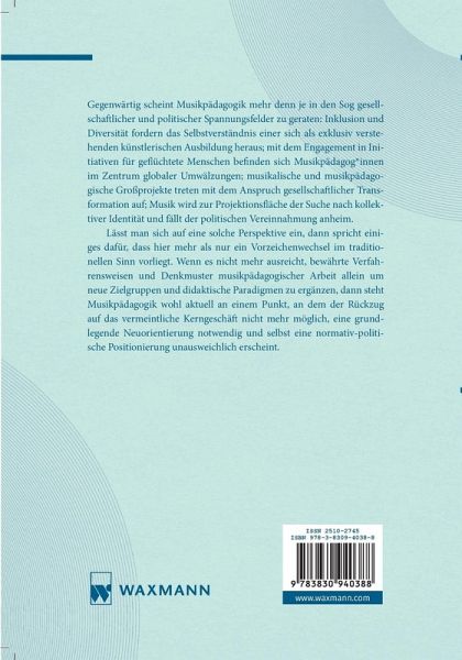 Gegenwärtig scheint Musikpädagogik mehr denn je in den Sog gesellschaftlicher und politischer Spannungsfelder zu geraten: Inklusion und Diversität fordern das Selbstverständnis einer sich als exklusiv verstehenden künstlerischen Ausbildung heraus; mit dem Engagement in Initiativen für geflüchtete Menschen befinden sich Musikpädagog_innen im Zentrum globaler Umwälzungen; musikalische und musikpädagogische Großprojekte treten mit dem Anspruch gesellschaftlicher Transformation auf; Musik wird zur Projektionsfläche der Suche nach kollektiver Identität und fällt der politischen Vereinnahmung anheim.