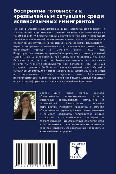 Tornado w Oklahome sluchaütsq wse chasche. Planirowanie gotownosti k chrezwychajnym situaciqm imeet wazhnoe znachenie dlq snizheniq riska trawmirowaniq ili gibeli lüdej w rezul'tate tornado. Issledowaniq znanij i predstawlenij ispanoqzychnyh immigrantow o gotownosti k chrezwychajnym situaciqm ogranicheny. Cel' dannogo issledowaniq - izuchit' wospriqtie i zhiznennyj opyt ispanoqzychnyh immigrantow, perezhiwshih tornado w Oklahome wesnoj 2013 goda. Polustrukturirowannye interw'ü byli prowedeny s celenaprawlennoj wyborkoj iz 10 immigrantow, prozhiwaüschih w Oklahoma-Siti, shtat Oklahoma, i ego okrestnostqh. Rezul'taty pokazali, chto uchastniki-immigranty perezhili neskol'ko tornado, regulqrno iskali ubezhische wo wremq tornado, a 50 % iz nih sozdali semejnyj plan dejstwij w chrezwychajnyh situaciqh i nabor sredstw iz-za swoego opyta s tornado i predpolagaemogo riska polucheniq trawm. Vyqwlennymi prepqtstwiqmi dlq planirowaniq gotownosti byli qzykowye bar'ery i nedostatok informacii o gotownosti k stihijnym bedstwiqm.