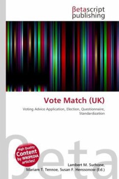 High Quality Content by WIKIPEDIA articles!A Vote Match is a short, online quiz (voting advice application) for voters to answer questions about their opinions and have them matched to the policies of the political parties. The idea is not to tell people how to vote. Rather, it is about informing people of the policies of the different political parties and to provide a starting point for further discussion and education. The UK version was developed by Unlock Democracy and based on Stemwijzer developed in The Netherlands by the Instituut Publiek en Politiek (IPP).