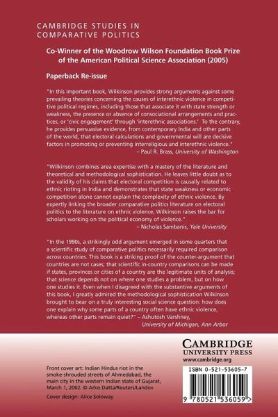 'In this important book, Wilkinson provides strong arguments against some prevailing theories concerning the causes of interethnic violence in competitive political regimes, including those that associate it with state strength or weakness, the presence or absence of consociational arrangements and practices, or 'civic engagement' through 'interethnic associations'. To the contrary, he provides persuasive evidence, from contemporary India and other parts of the world, that electoral calculations and governmental will are decisive factors in promoting or preventing interreligious and interethnic violence.' Paul R. Brass, Professor Emeritus of Political Science and South Asian Studies, University of Washington