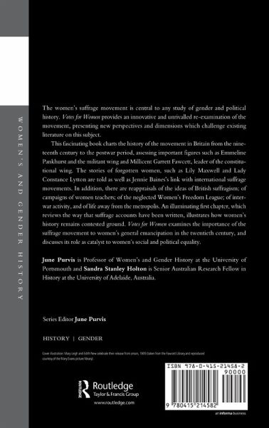 Votes for Women examines the importance of the suffrage movement to women's general emancipation in the twentieth century, and discusses its role as catalyst to women's social and political equality.