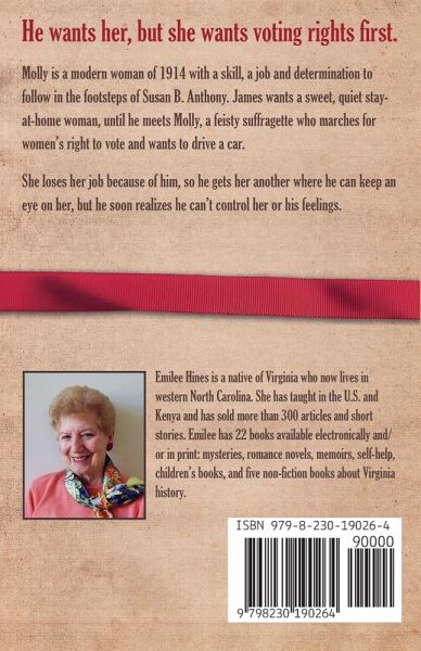 He wants her, but she wants voting rights first. Molly is a modern woman of 1914 with a skill, a job and determination to follow in the footsteps of Susan B. Anthony. James wants a sweet, quiet stay-at-home woman, until he meets Molly, a feisty suffragette who marches for women's right to vote and wants to drive a car. She loses her job because of him, so he gets her another where he can keep an eye on her, but he soon realizes he can't control her or his feelings.