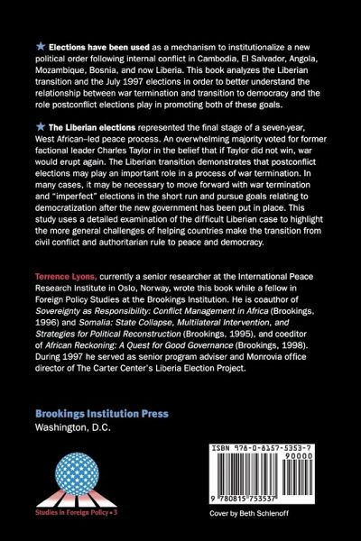 " Elections have been used as a mechanism to institutionalize a new political order following internal conflict in Cambodia, El Salvador, Angola, Mozambique, Bosnia, and now Liberia. This book analyzes the Liberian transition and the July 1997 elections in order to better understand the relationship between war termination and transitions to democracy and the role post-conflict elections play in promoting both of these goals. The Liberian elections represented the final stage of a seven-year, West African-led peace process. An overwhelming majority voted for former factional leader Charles Taylor in the belief that if Taylor did not win, war would erupt again. The Liberian transition demonstrates that post-conflict elections may play an important role in a process of war termination. In many cases, it may be necessary to move forward with war termination and ""imperfect"" elections in the short run and pursue goals relating to democratization after the new government has been put in place. This study uses a detailed examination of the difficult Liberian case to highlight the more general challenges of helping countries make the transition from civil conflict and authoritarian rule to peace and democracy. Studies in Foreign Policy"