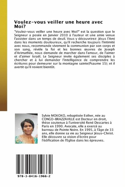 "Voulez-vous veiller une heure avec Moi?" est la question que le Seigneur a posée en Janvier 2010 à l'auteur et une amie venue l'assister dans un temps de deuil. Vous y découvrirez: Jésus l'Ami dans les moments douloureux, qu'il recherche toujours l'intimité avec nous, recommande vivement la communion par son corps et son sang, révèle la foi et les bonnes oeuvres de Joseph d'Arimathée, nous demande de marcher dans l'amour, de l'aimer et d'aimer Israël. Le Seigneur invite également ses disciples à chercher et à lui demander l'intelligence de comprendre les écritures pour demeurer sur la montagne sainte(Psaume 15); et il avertit qu'il revient bientôt.