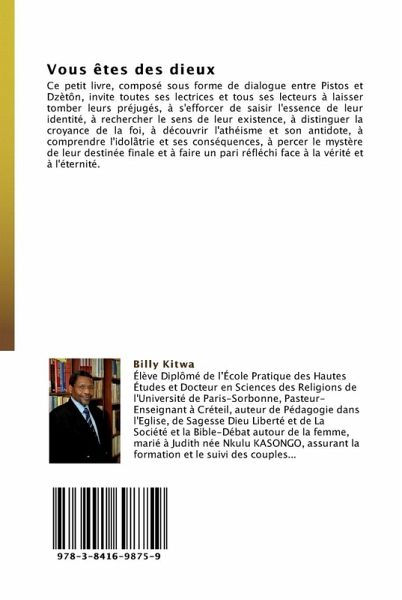 Ce petit livre, composé sous forme de dialogue entre Pistos et Dzètôn, invite toutes ses lectrices et tous ses lecteurs à laisser tomber leurs préjugés, à s'efforcer de saisir l'essence de leur identité, à rechercher le sens de leur existence, à distinguer la croyance de la foi, à découvrir l'athéisme et son antidote, à comprendre l'idolâtrie et ses conséquences, à percer le mystère de leur destinée finale et à faire un pari réfléchi face à la vérité et à l'éternité.