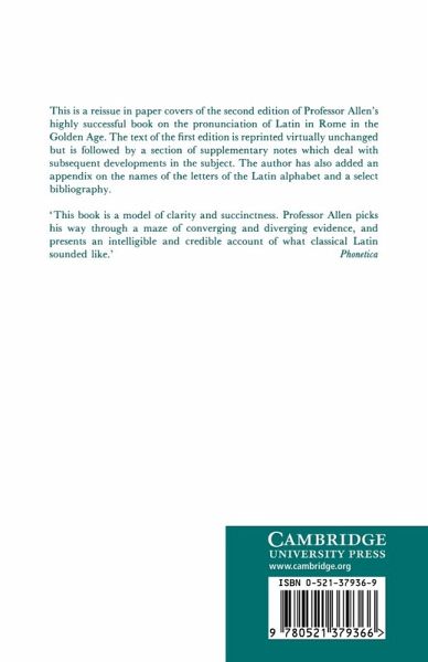 This is a reissue of the second edition of a book on the pronunciation of Latin in Rome in the Golden Age. It has a section of supplementary notes which deal with subsequent developments in the subject. The author has also added an appendix on the names of the letters of the Latin alphabet.