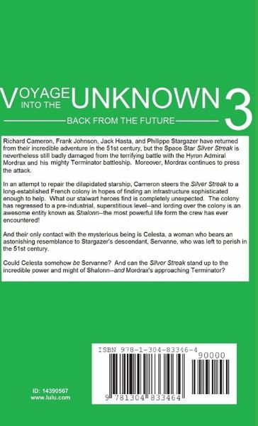 Richard Cameron, Frank Johnson, Jack Hasta, and Philippe Stargazer have returned from their incredible adventure in the 51st century, but the Space Star Silver Streak is nevertheless still badly damaged from the terrifying battle with the Hyron Admiral Mordrax and his mighty Terminator battleship. Moreover, Mordrax continues to press the attack. In an attempt to repair the dilapidated starship, Cameron steers the Silver Streak to a long-established French colony in hopes of finding an infrastructure sophisticated enough to help. What our stalwart heroes find is completely unexpected. The colony has regressed to a pre-industrial, superstitious level--and lording over the colony is an awesome entity known as Shalonn--the most powerful life form the crew has ever encountered! And their only contact with the mysterious being is Celesta, a woman who bears an astonishing resemblance to Stargazer's descendant, Servanne, who was left to perish in the 51st century.