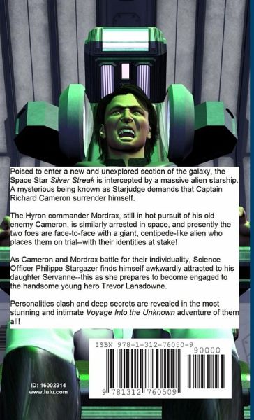 Poised to enter a new and unexplored section of the galaxy, the Space Star Silver Streak is intercepted by a massive alien starship. A mysterious being known as Starjudge demands that Captain Richard Cameron surrender himself. The Hyron commander Mordrax, still in hot pursuit of his old enemy Cameron, is similarly arrested in space, and presently the two foes are face-to-face with a giant, centipede-like alien who places them on trial--with their identities at stake! As Cameron and Mordrax battle for their individuality, Science Officer Philippe Stargazer finds himself awkwardly attracted to his daughter Servanne--this as she prepares to become engaged to the handsome young hero Trevor Lansdowne. Personalities clash and deep secrets are revealed in the most stunning and intimate Voyage Into the Unknown adventure of them all!