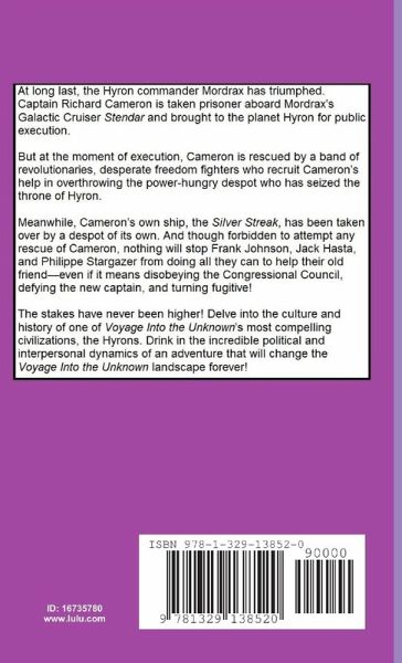 At long last, the Hyron commander Mordrax has triumphed. Captain Richard Cameron is taken prisoner aboard Mordrax's Galactic Cruiser Stendar and brought to the planet Hyron for public execution. But at the moment of execution, Cameron is rescued by a band of revolutionaries, desperate freedom fighters who recruit Cameron's help in overthrowing the power-hungry despot who has seized the throne of Hyron. Meanwhile, Cameron's own ship, the Silver Streak, has been taken over by a despot of its own. And though forbidden to attempt any rescue of Cameron, nothing will stop Frank Johnson, Jack Hasta, and Philippe Stargazer from doing all they can to help their old friend-even if it means disobeying the Congressional Council, defying the new captain, and turning fugitive!